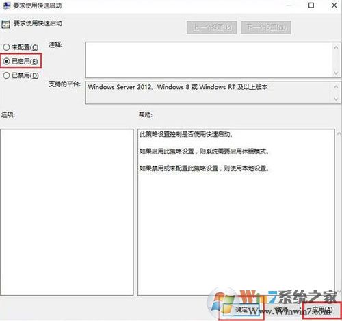 3、在彈出的窗口中選擇“已啟用”,點擊應(yīng)用——確定,完成設(shè)置即可。如圖: