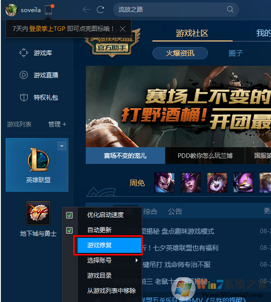 2、使用tgpteng騰訊游戲平臺(tái)對(duì)游戲進(jìn)行修復(fù)。