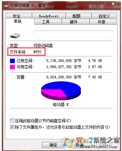 轉(zhuǎn)換完,再次查看優(yōu)盤屬性,可以看到之前的"FAT32"已經(jīng)變成了"NTFS".