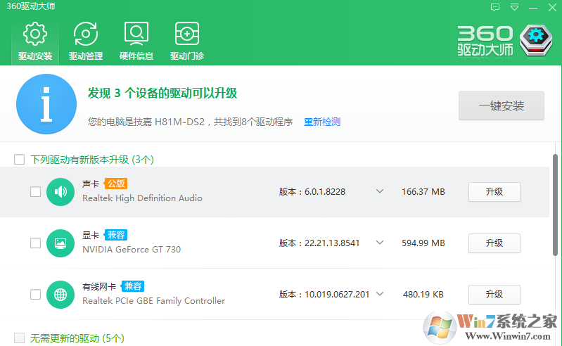 1、打開360驅(qū)動(dòng)大師查看驅(qū)動(dòng)是否完整。