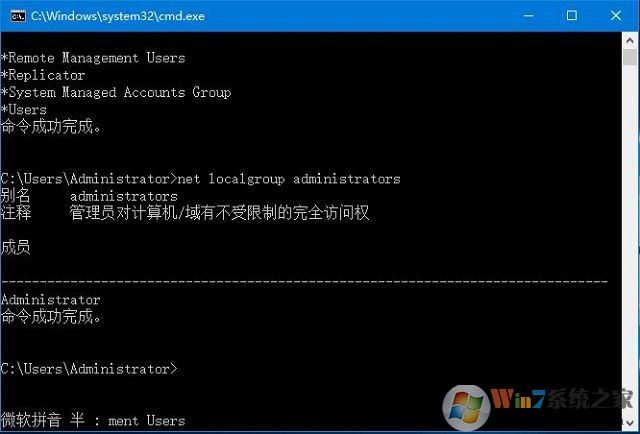 3、net localgroup 命令后面接上用戶組名,按回車鍵即可查看組中的用戶。比如查看administrators管理員用戶組中的用戶即執(zhí)行: