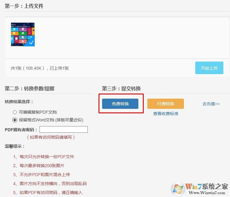 2、選擇保留格式的Word,然后點擊免費轉(zhuǎn)換www.cncxm.com 系統(tǒng)之家