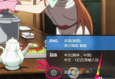1、點(diǎn)擊系統(tǒng)托盤(pán)區(qū)的輸入法選擇[語(yǔ)言首選項(xiàng)](也可以從開(kāi)始菜單—設(shè)置—時(shí)間和語(yǔ)言進(jìn)入)