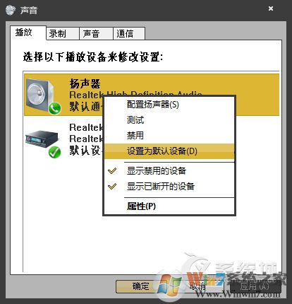 6、將默認(rèn)的播放設(shè)備:耳機(jī)更改為揚(yáng)聲器,然后確定即可。