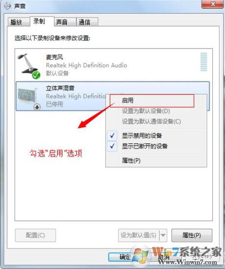 在里邊把“立體聲混音”右鍵啟用并設(shè)置為默認(rèn)。