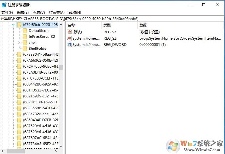 2、然后定位到HKEY_CLASSES_ROOT\CLSID{679f85cb-0220-4080-b29b-5540cc05aab6}\ShellFolder