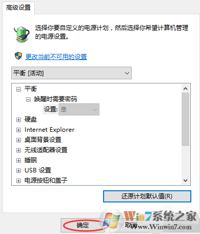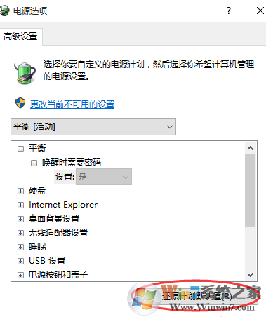 4、選擇“還原計(jì)劃默認(rèn)值”;