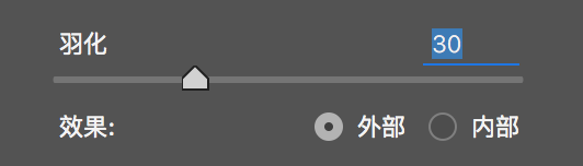 將羽化設(shè)置為30左右,然后效果改為外部,你會發(fā)現(xiàn)綠色區(qū)域反轉(zhuǎn)到圓圈外部,接下來我就可以調(diào)整參數(shù),來控制照片邊緣的表現(xiàn)了。