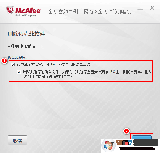 3、在彈出的卸載窗口中,根據(jù)您的實(shí)際需求,勾選相應(yīng)選項(xiàng),并點(diǎn)擊“刪除”按鈕,如圖: