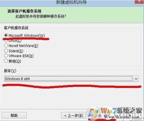 4.因為win10剛出來,虛擬機還沒win10選項(新版的已經(jīng)有Win10選項了)。如果沒有選擇win8x64也是沒問題的。點下一步