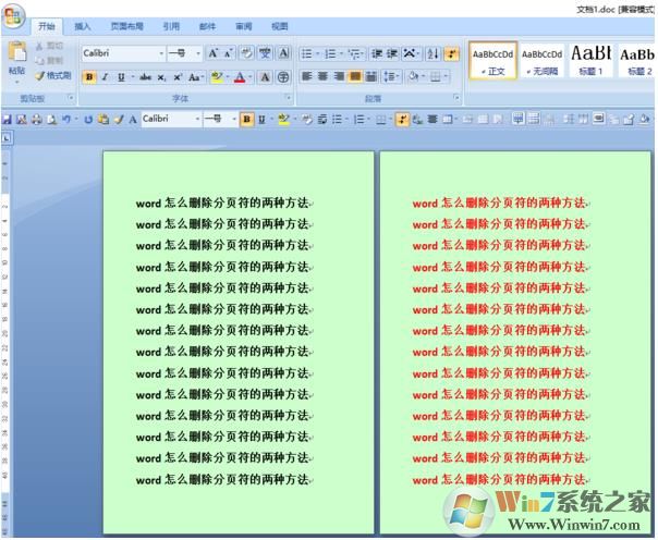 2.分別將插入點(diǎn)定位到分頁符前面,按“Delete”鍵刪除分頁符。如下圖: