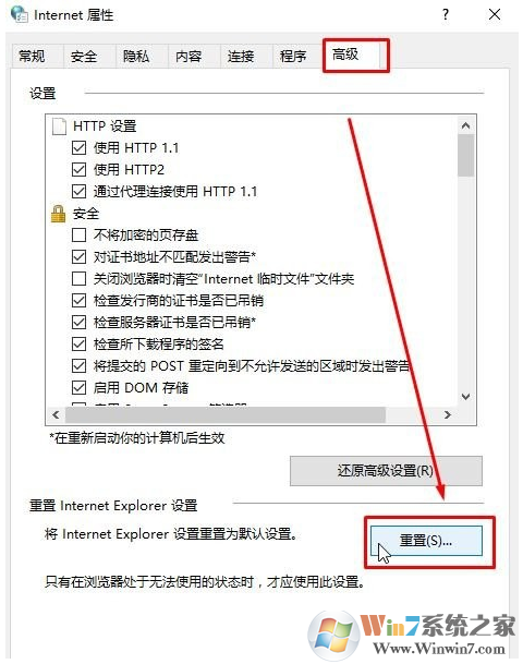 3、切換到平【高級】選卡,點擊【重置】,重置完成后重啟電腦即可正常登錄微軟賬戶。
