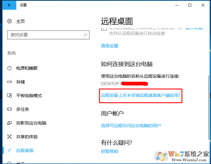 4、然后點擊遠程桌面設(shè)備上還未安裝遠程桌面客戶端?查看自己的遠程設(shè)備需要安裝什么軟件。