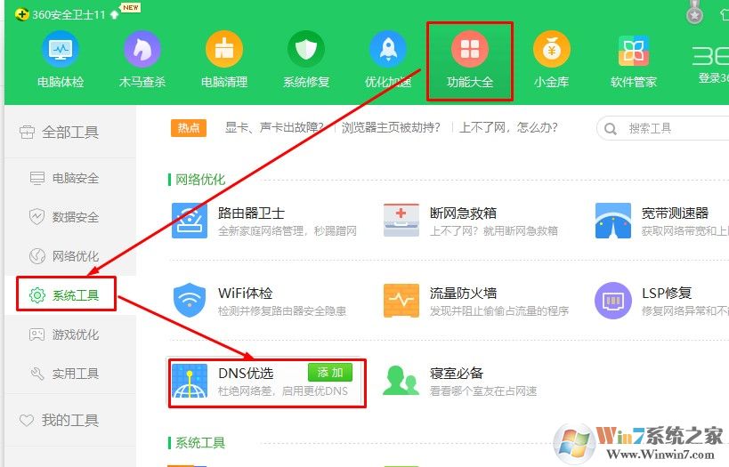這個方法簡單粗暴,但只對一部分玩家有效!如果你安裝有360,直接用360進行DNS修復即可。