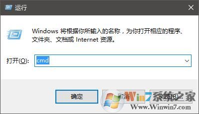 1、按下Win+r 組合鍵打開運(yùn)行,在框中輸入:cmd 點(diǎn)擊確定打開命令提示符;如圖所示: