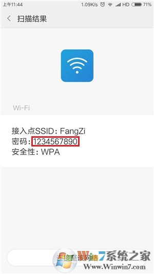 此時可以使用其他手機掃描該二維碼,或?qū)⑵聊恢苯咏貓D(按音量下鍵+電源鍵、任務(wù)鍵+電源鍵或下拉任務(wù)欄中的截屏按鈕即可),然后在桌面上找到并打開“掃一掃”圖標(默認在“系統(tǒng)工具”文件夾中),點擊右上角的“相片”圖標,然后再相冊中打開“截屏”文件夾并選擇該截圖,最后在掃描結(jié)果頁面中,點一下該熱點密碼后面的一串星號,即可將其顯示出來。