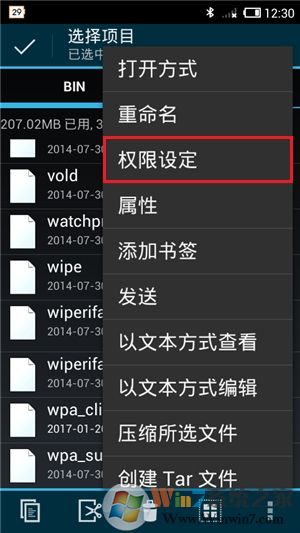 然后還需要為該驅(qū)動內(nèi)核文件,設(shè)置正確的權(quán)限以便能夠被軟件正常訪問和調(diào)用。在“/system/bin/”目錄下點擊“wpa_cli”文件右側(cè)的勾將其選中,然后點擊底端最右側(cè)的“...”按鈕,接著點擊其中的“權(quán)限設(shè)定”菜單項,并在彈出的權(quán)限設(shè)置框中,設(shè)為允許本機全部用戶有“讀”和“執(zhí)行”的權(quán)限,并只為文件所有者開啟“寫”的權(quán)限,即為該文件的權(quán)限屬性設(shè)置為0755(rwxr-xr-x),最后點擊“確定”鍵后重啟手機該功能驅(qū)動即可生效。