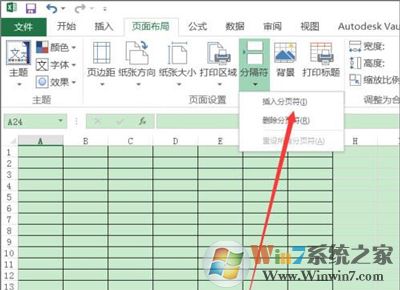 4、然后在【頁(yè)面布局】的【頁(yè)面設(shè)置】組中單擊【分隔符】按鈕。