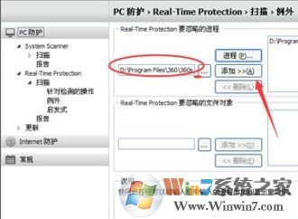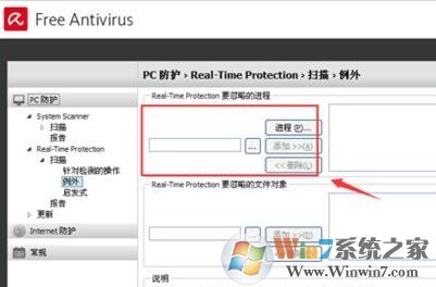 步驟3、設(shè)置進(jìn)程排除列外,進(jìn)入列外菜單有進(jìn)程,和對象文件夾列外,如圖: