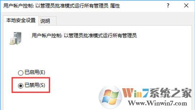 3、在右側(cè)找到【用戶賬戶控制:以管理員批準(zhǔn)模式運(yùn)行所有管理員】,雙擊打開,選擇【已禁用】點(diǎn)擊確定;