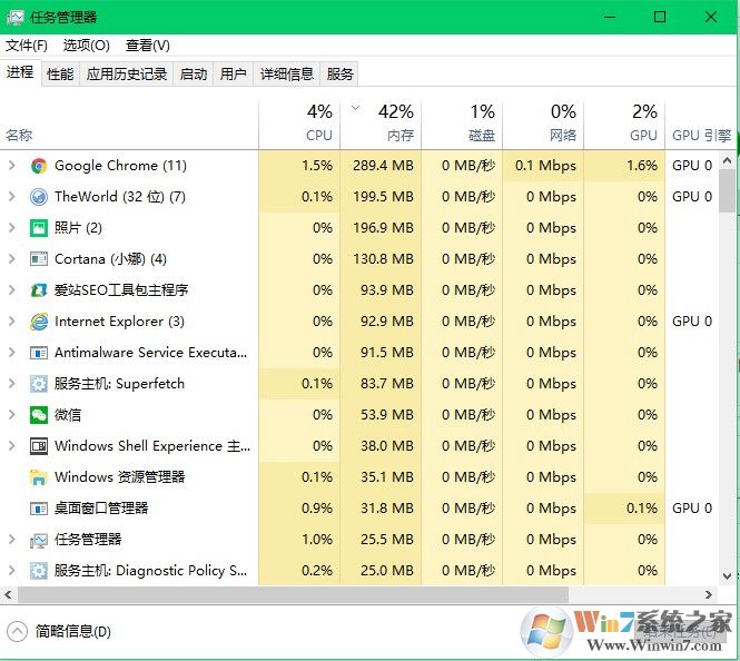 我們也可以從進(jìn)程后面的詳細(xì)列表中看見(jiàn)該軟件進(jìn)程占用系統(tǒng)硬件的資源量,以此判斷是什么軟件照成了系統(tǒng)的卡頓。將其結(jié)束或者直接卸載可解決電腦卡頓問(wèn)題。
