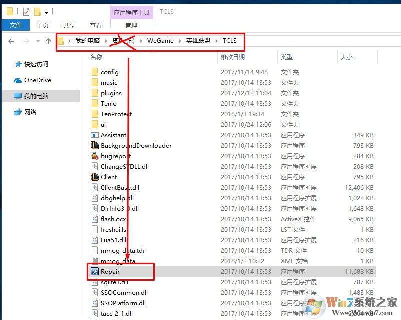4、運(yùn)行LOL自帶de的修復(fù)功能對(duì)lol進(jìn)行修復(fù)。在游戲安裝盤下找到repair這個(gè)文件,雙擊打開(kāi)即可自動(dòng)運(yùn)行游戲修復(fù)。