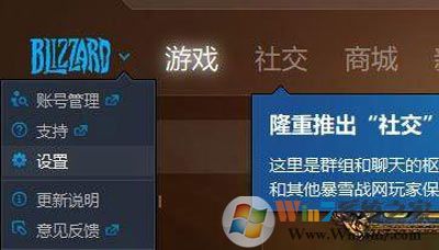 1、點擊“訪問戰(zhàn)網(wǎng)菜單”,在彈出的菜單中選擇“設置”按鈕;