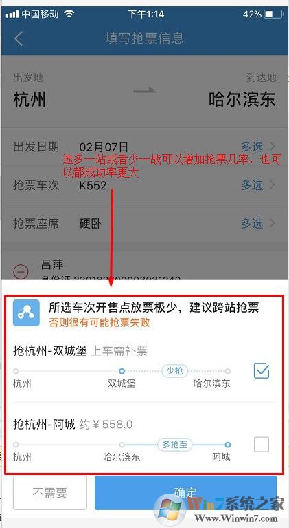 6、選擇多搶一戰(zhàn)或者少搶一站,這樣可以極大的增加自己的搶票成功率。如果買(mǎi)的是少一站的上車(chē)之后補(bǔ)一戰(zhàn)的錢(qián)即可,如果多一戰(zhàn)的不影響自己提前下車(chē)。