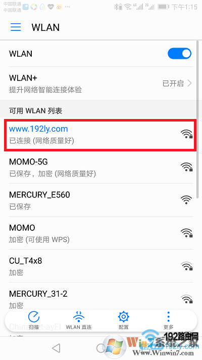 如下圖所示,鴻哥自己這臺路由器的wifi名稱是:www.192ly.com;我在用手機修改它的wifi密碼之前,手機需要先連接到這個wifi信號。