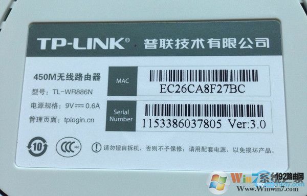 大家可以在自己路由器底部標簽中,查看到這臺路由器的設置網址信息,如下圖所示。我這臺路由器的設置網址是:tplogin.cn