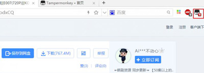 此時打開任意一個百度云資源的網(wǎng)址,就可以看到油猴插件圖標(biāo)上多出了一個數(shù)字1,說明已經(jīng)監(jiān)測到了百度云并作出了屏蔽其調(diào)動百度云盤的行為。