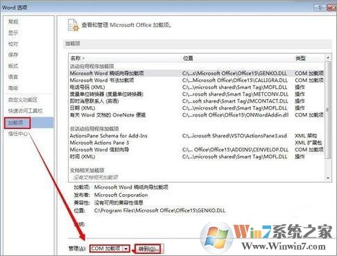 4、再把COM加載項(xiàng)內(nèi)不要的項(xiàng)刪除就可以了。再把WORD 2013關(guān)閉再開啟試試看速度有沒有得到提升。