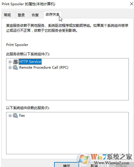 3、在依賴關(guān)系欄里,找到【print spooler】服務(wù)所依賴的相關(guān)服務(wù)rpc,