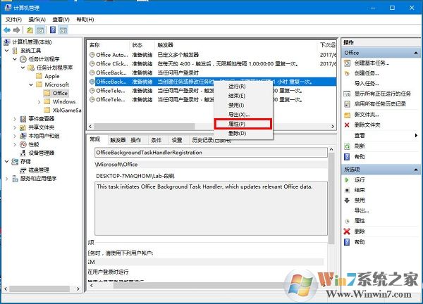 4、右擊 “OfficeBackgroundTaskHandlerRegistration” 選擇屬性。