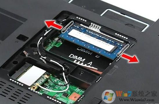 安裝內(nèi)存的話也很簡單,按照位置,插入內(nèi)存,然后向下按即可。Win7系統(tǒng)之家 www.cncxm.com 整理