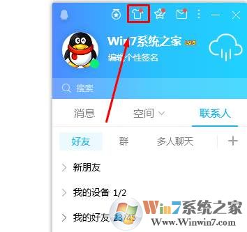 1、首先打開QQ,然后點擊上面的皮膚按鈕,如下圖