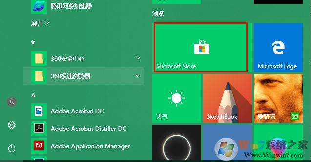 1、打開開始菜單選擇Microsoft store