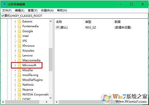 4、在展開(kāi)的文件夾中,找到“Microsoft”點(diǎn)擊紅色框內(nèi)箭頭所示的文件夾前的+按扭