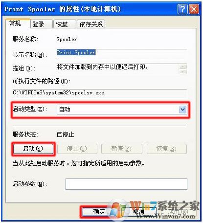 11、在“Print Spooler 的屬性(本地計(jì)算機(jī))”窗口中,確保“啟動(dòng)類(lèi)型”已設(shè)置為“自動(dòng)”,點(diǎn)擊“啟動(dòng)”按鈕,然后點(diǎn)擊“確定”按鈕。如圖 11 啟動(dòng)服務(wù)所示: