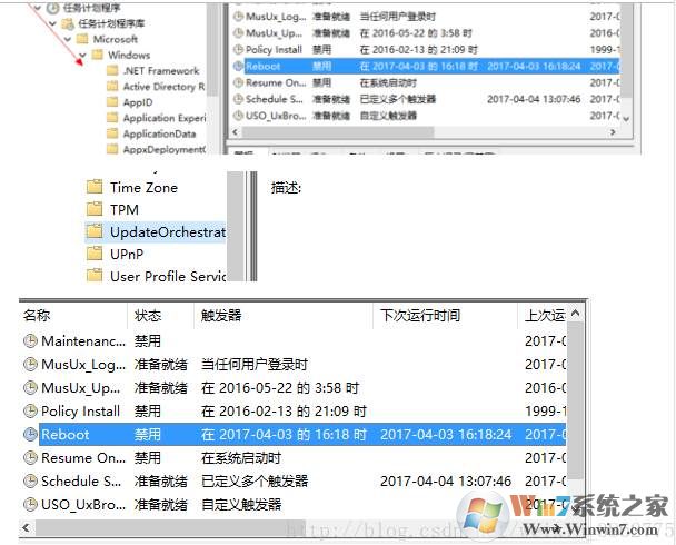 3、然后在右側找到“Reboot”任務禁用