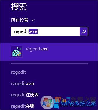 2、或者【W(wǎng)in+S】搜索輸入“regedit”程序。