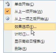 單擊窗口右側(cè)“自定義動畫”對話框中“詞不達(dá)意.mp3”右側(cè)下拉箭頭,選中“從上一項開始”,再單擊“效果選項”;