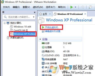 10、接著我們在主界面選中新建的XP虛擬機,點擊開啟此虛擬機,如圖: