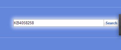 2、打開后在右上角搜索框中輸入需要更新的補丁,如:KB4058258 然后點擊 search 進行搜索;