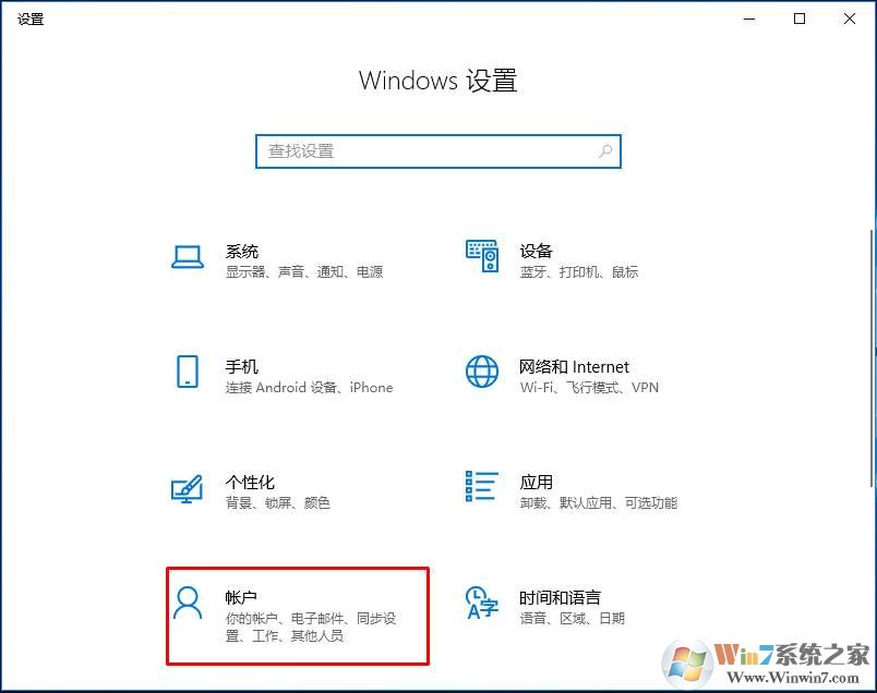 3、點(diǎn)擊賬戶選項(xiàng),這里是Win10管理帳戶的地方;