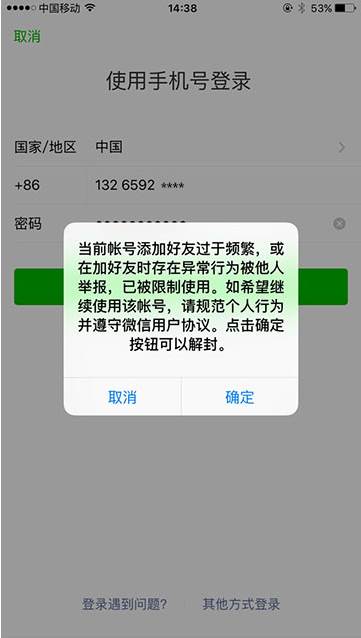 (7)輸入被封微信賬號——輸入驗證手機(jī)號碼——輸入驗證碼