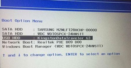 6、插入制作好的U盤啟動盤,重啟按F12或FN+F12調出啟動管理對話框,選擇USB HDD識別到U盤啟動進入PE