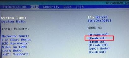 4、轉(zhuǎn)到Main,選擇F12 Boot Menu回車,設(shè)置為Enabled,按F10選擇Yes回車保存修改,如下圖所示;
