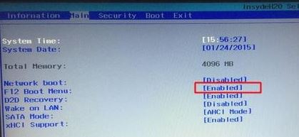 4、轉(zhuǎn)到Main,選擇F12 Boot Menu回車,設(shè)置為Enabled,按F10選擇Yes回車保存修改,如圖所示: