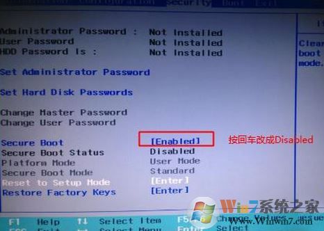 1、開機(jī)一直按F2或(FN+F2)進(jìn)入BIOS,按→方向鍵切換到Security,選擇Secure Boot回車設(shè)置成Disabled;